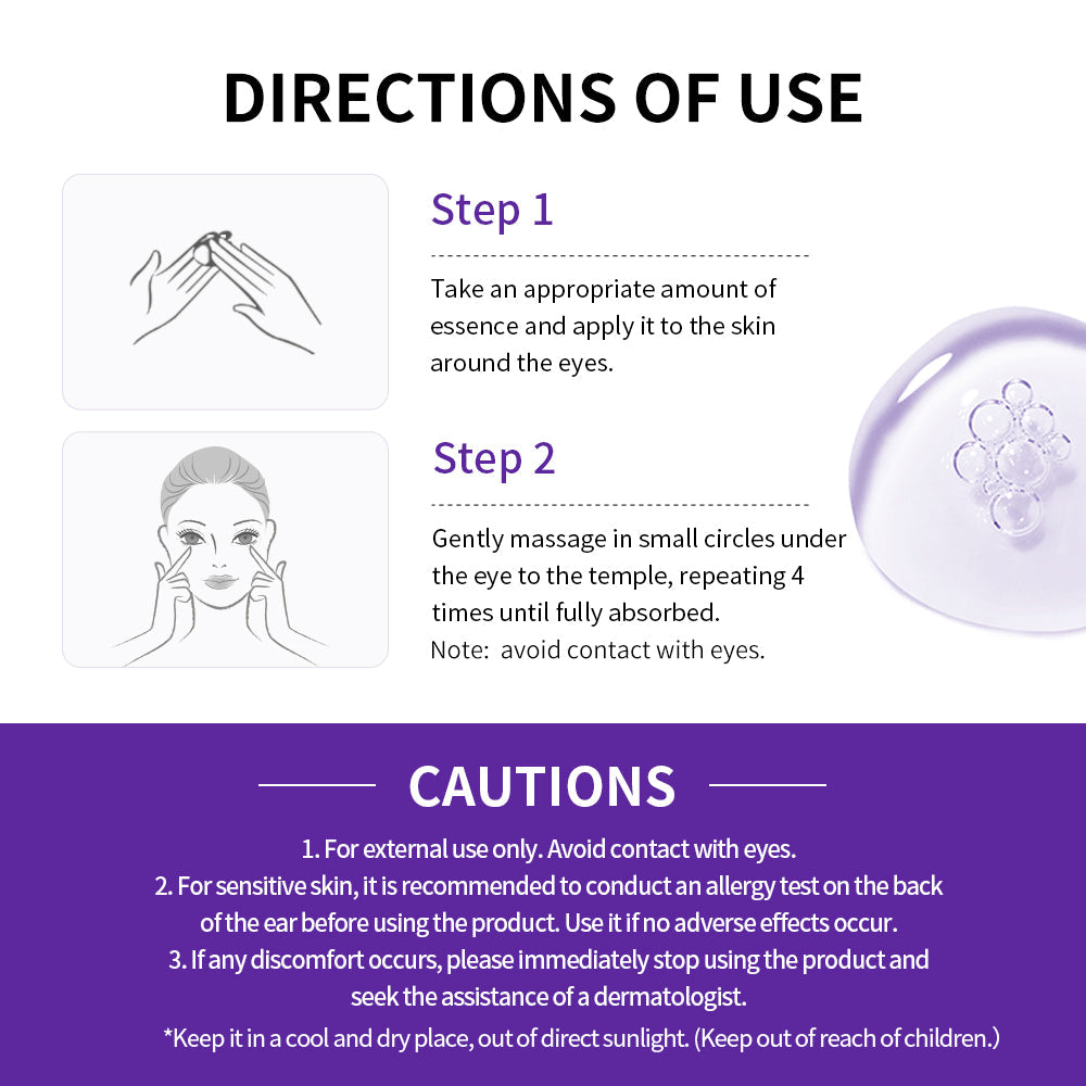 ✅Mengaktifkan penjanaan semula kolagen dan menegangkan kulit di sekeliling mata.