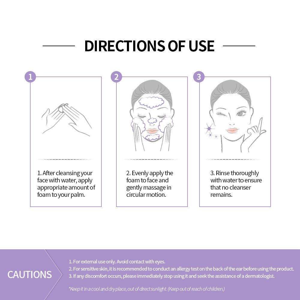 1. After cleansing your face with water, apply appropriate amount of foam to your palm.